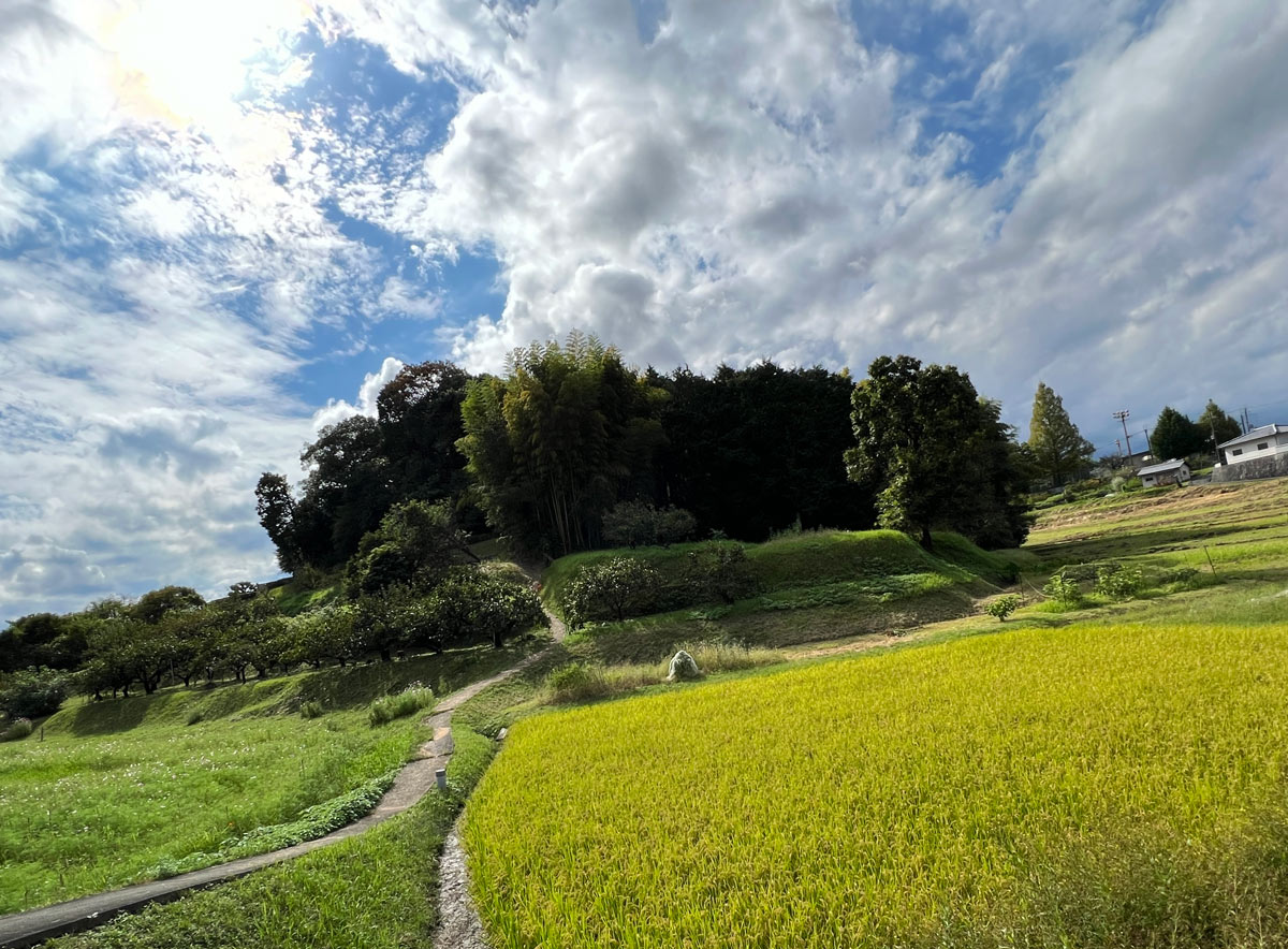 ・8世紀が近いので、もはや前方後円墳ではなく、大王のみが許された八角墳という形式です。稲作の祭祀が大王の使命なので、手前に稲穂が写りうれしい。