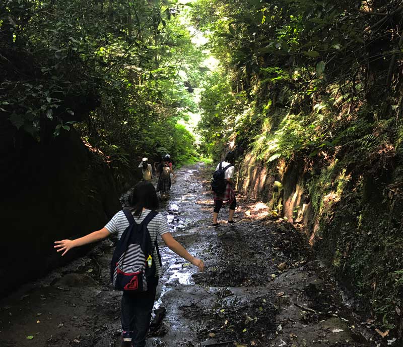 ・急なうえに、石の上を水が流れてくるものだから、転びそうになる。