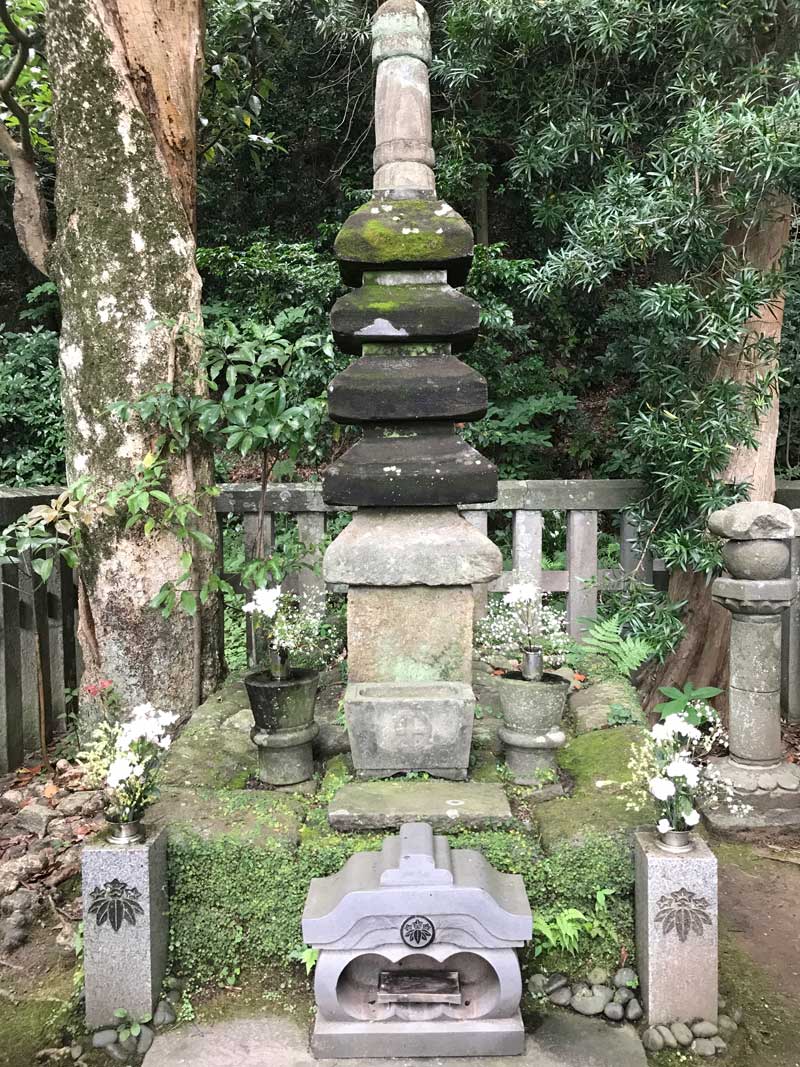 ・鶴岡八幡宮の裏手、白旗神社の急な石段を登ったところに源頼朝の墓がある。