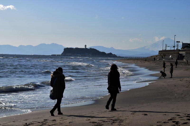 ・午後3時ころ。稲村ヶ崎から江ノ島を望む。