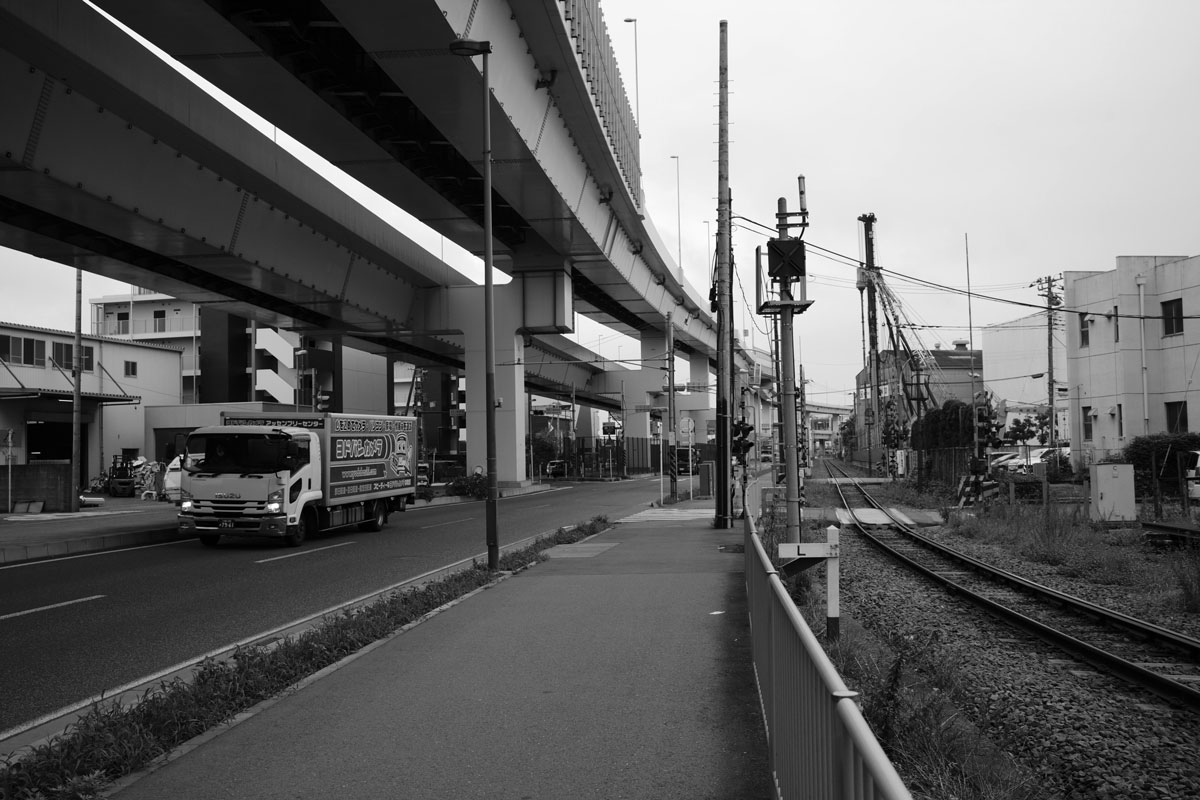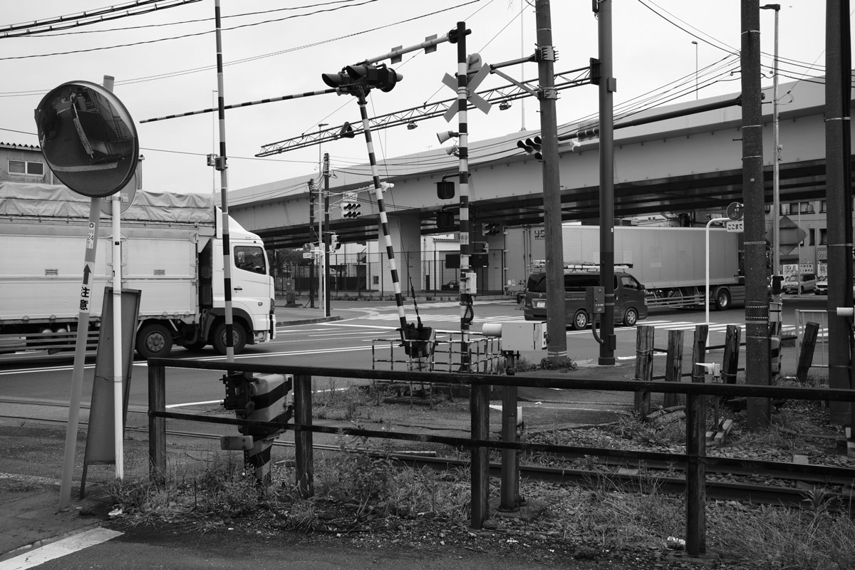 ・駅前から真っ直ぐ行くと、すぐに跨線橋。