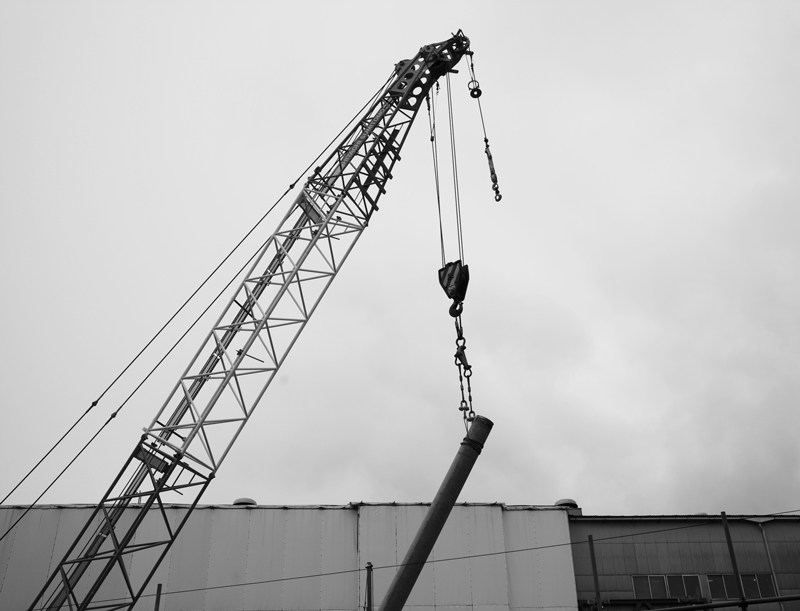 ・さほど大きなクレーンではないが、それでも機械の力で作業が進むことの価値を感じる。