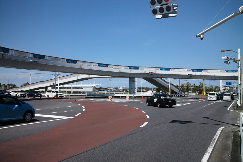 ・右側に大きな歩道橋。
