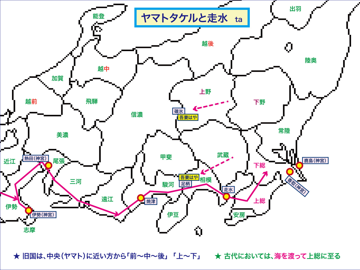 ・ヤマトタケルの東征物語あり。(『古事記』倭健命。『日本書紀』日本武尊)