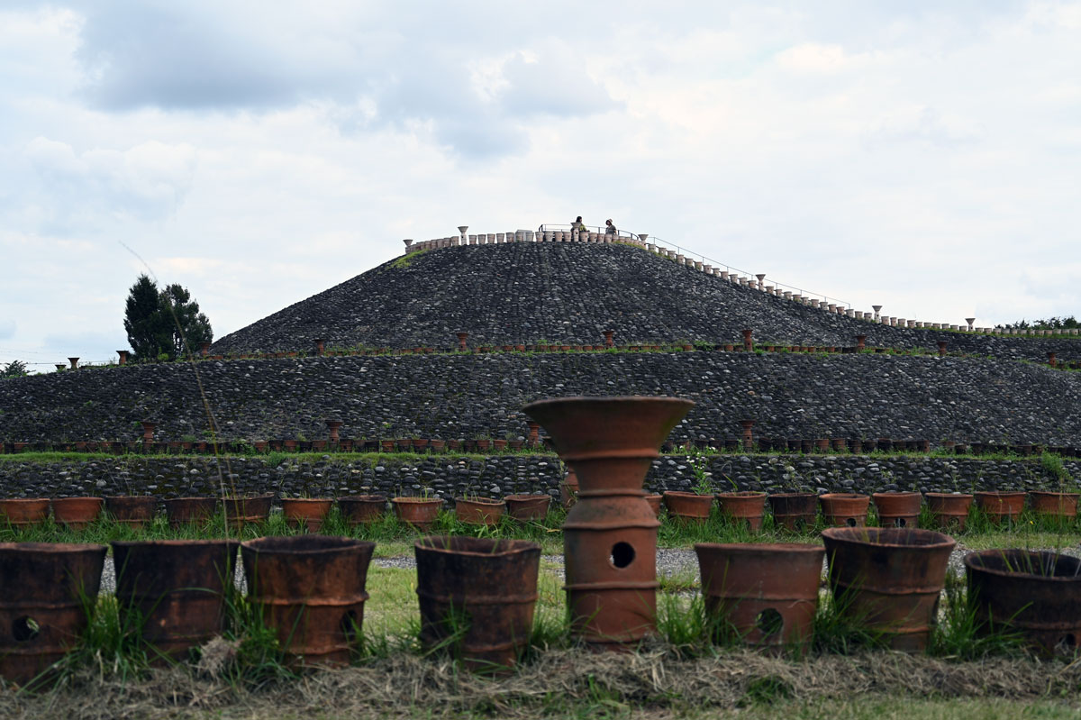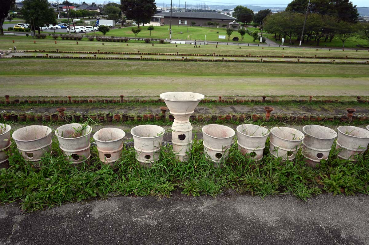 ・地面を固めて、円筒埴輪を配置。