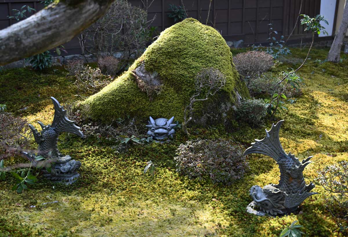 ・苔と鬼瓦、手前に鯱鉾。
