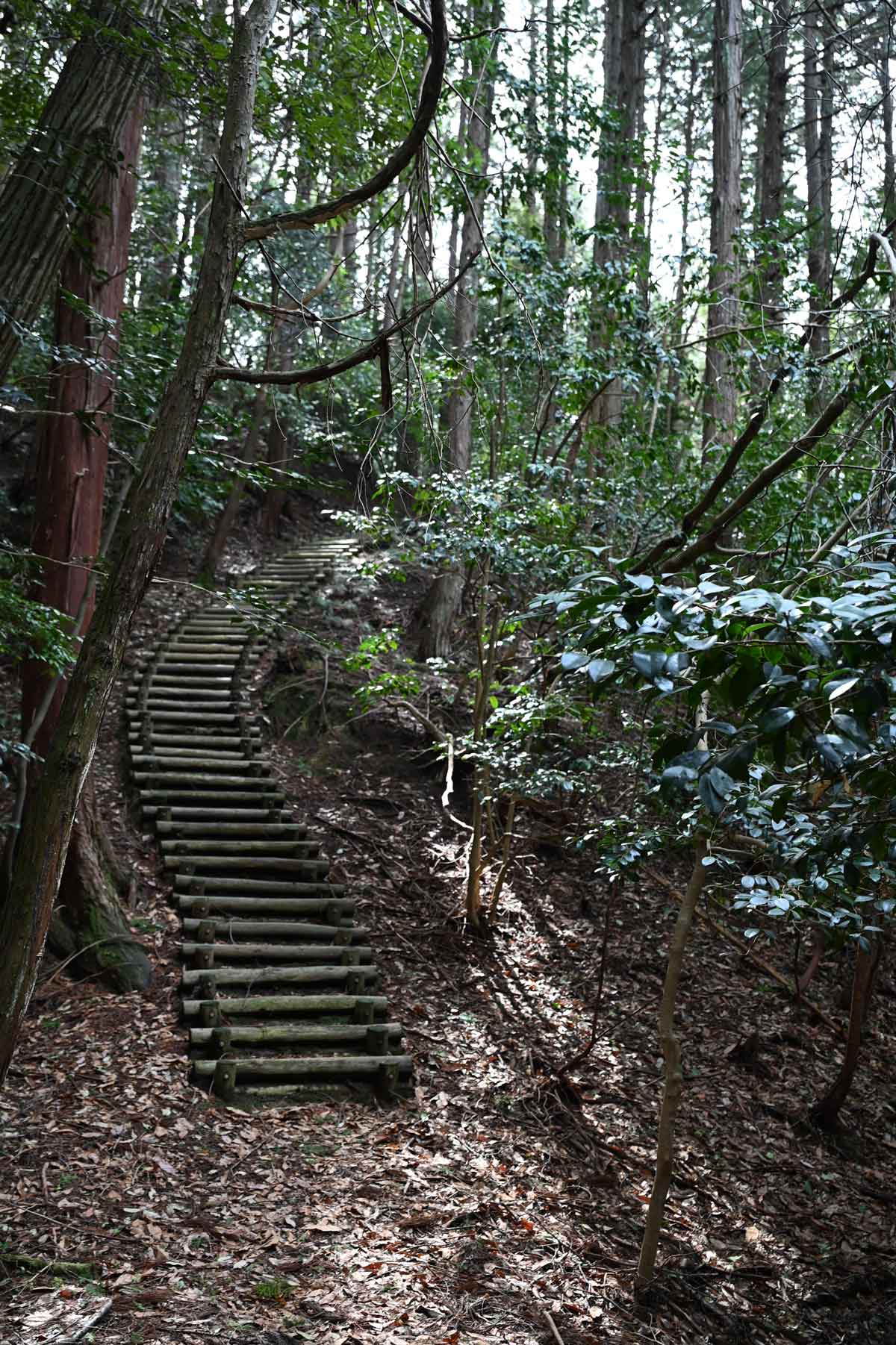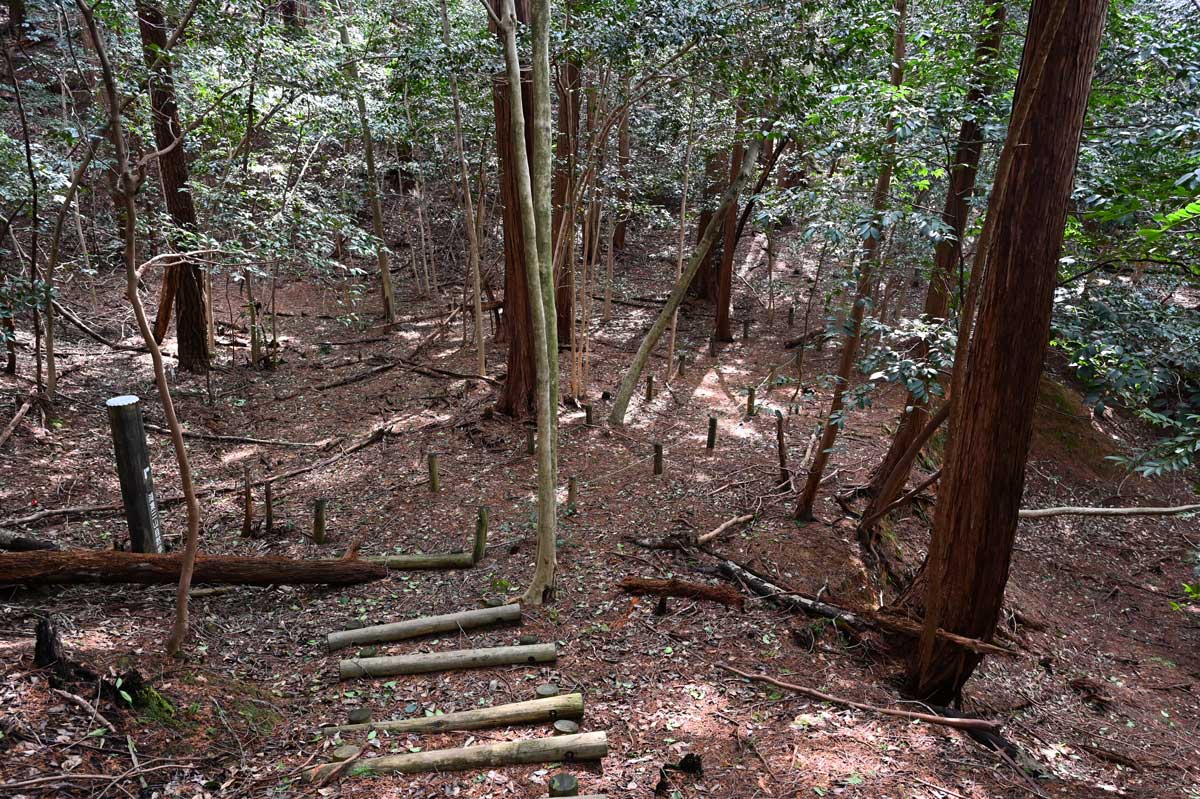 ・石段を避けて、緩やかな坂を下る。