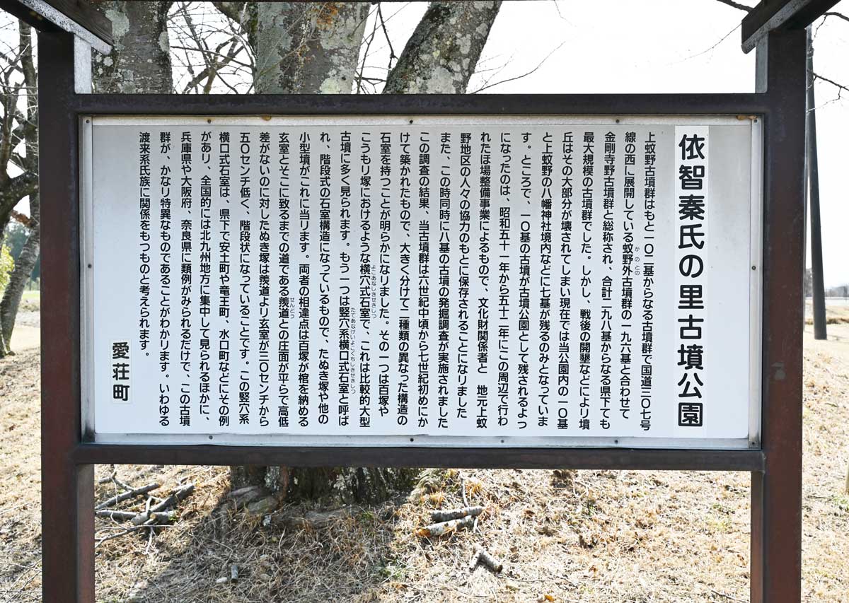 ・渡来系族である秦氏の系統、依智秦氏(えちはたうじ)ゆかりの古墳らしい。