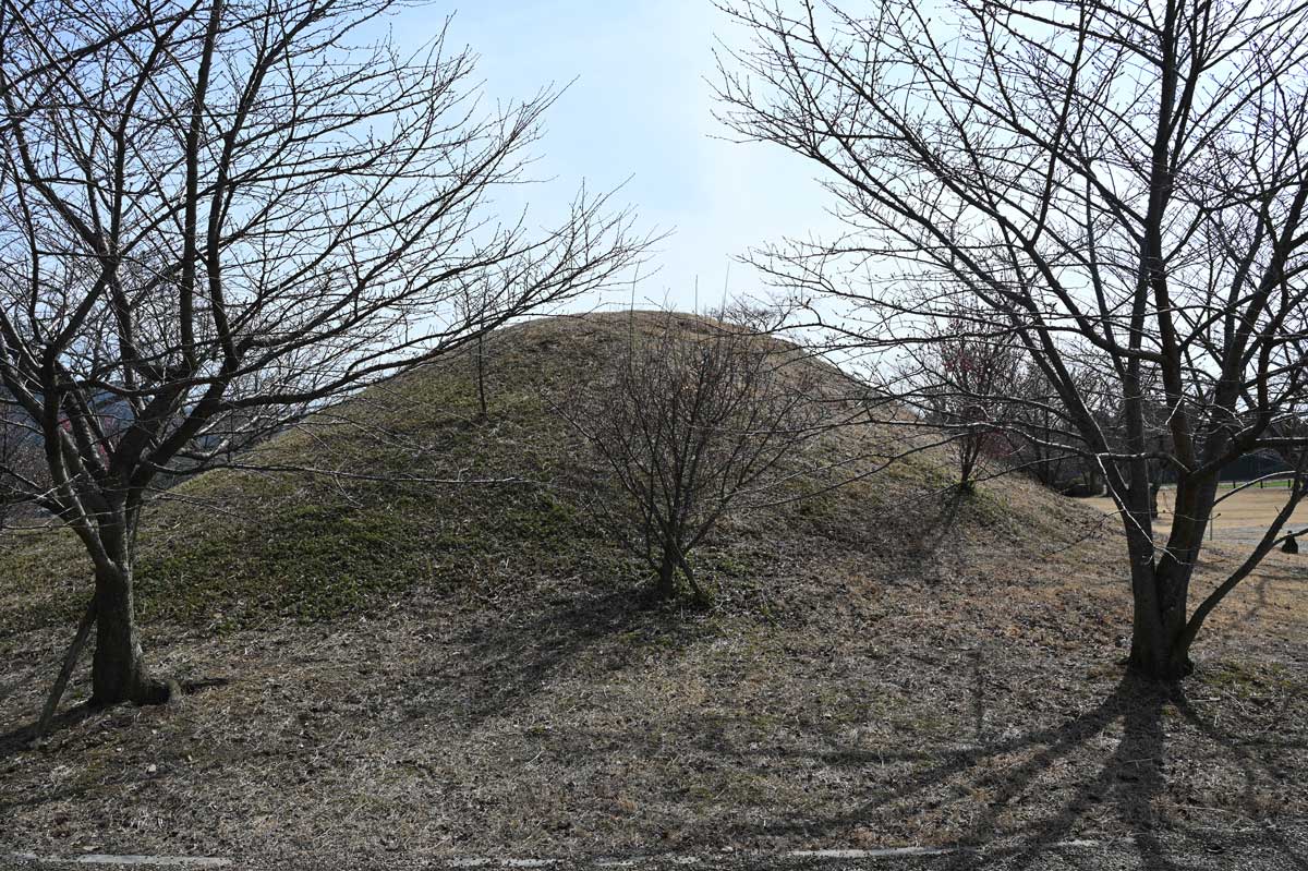 ・円墳。梅がほどよく咲いている。