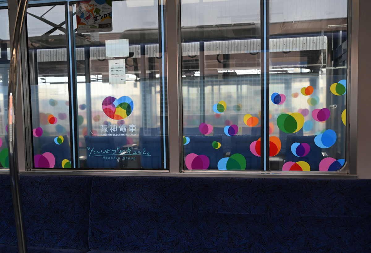 ・カラフルな水玉の合成は阪神電車。