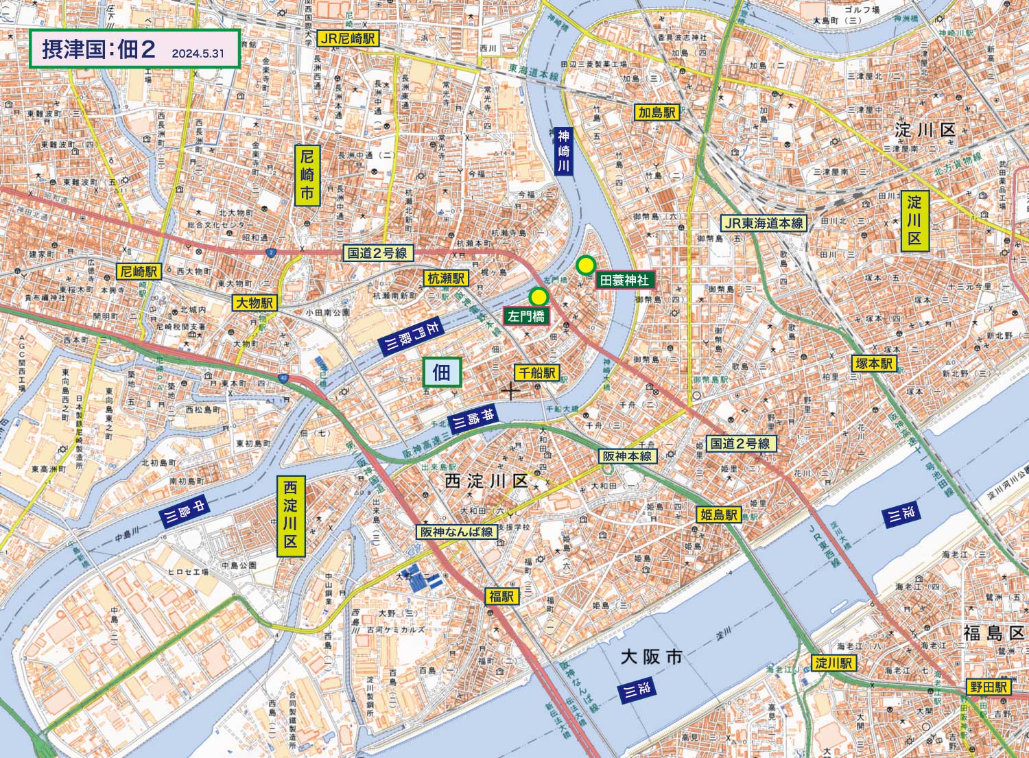 ・神崎川と左門殿川に囲まれた三角州