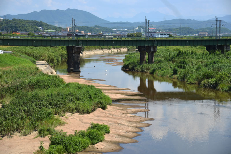 ・飯塚市を流れる遠賀川。鉄道は筑豊本線。