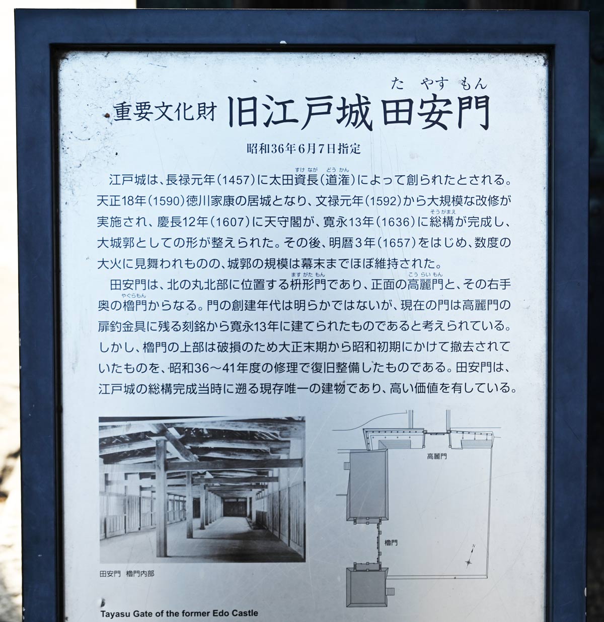 ▼田安門の説明板 2023.12