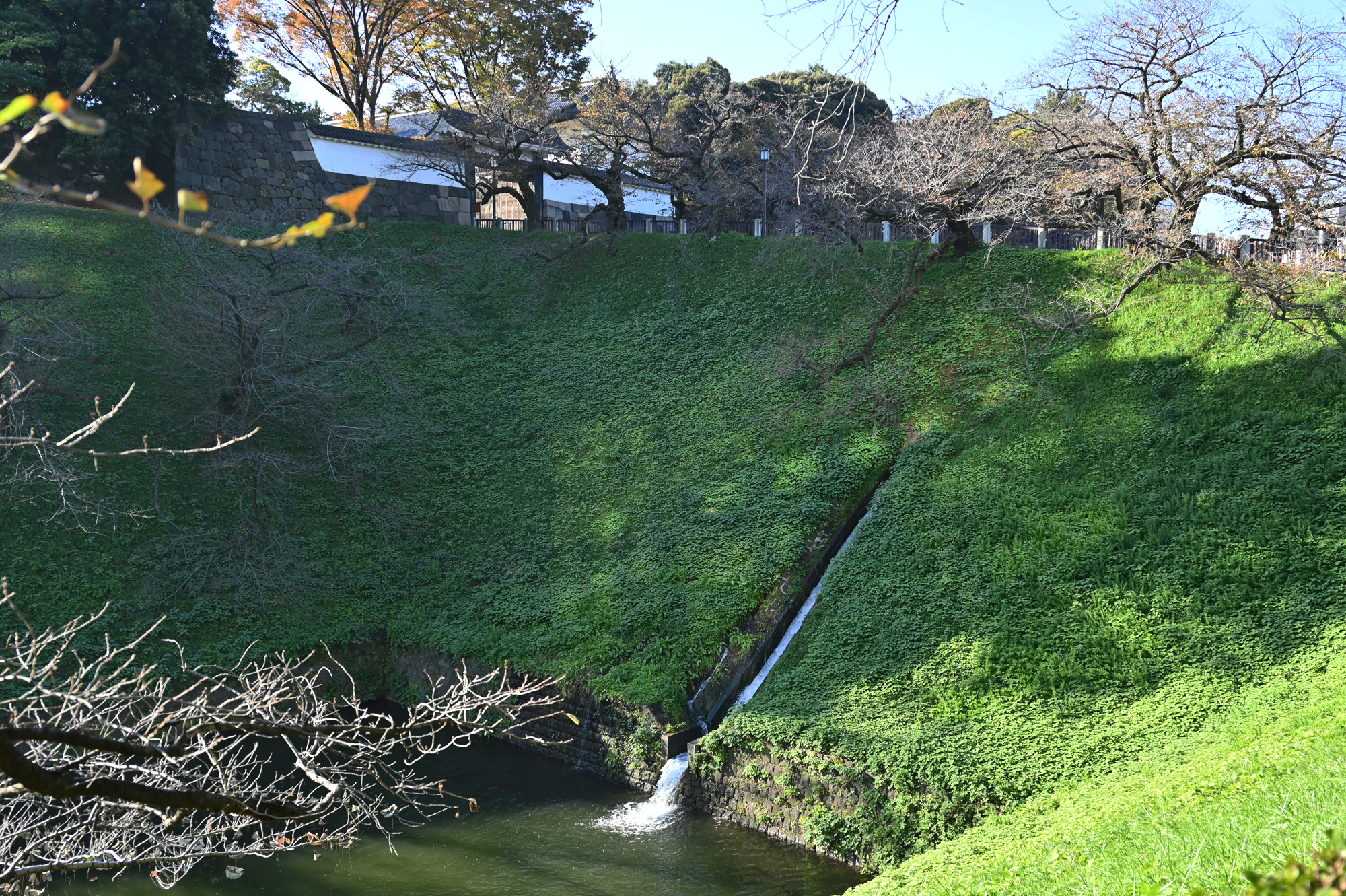 ・田安門と排水溝。まるで滝のようだ。