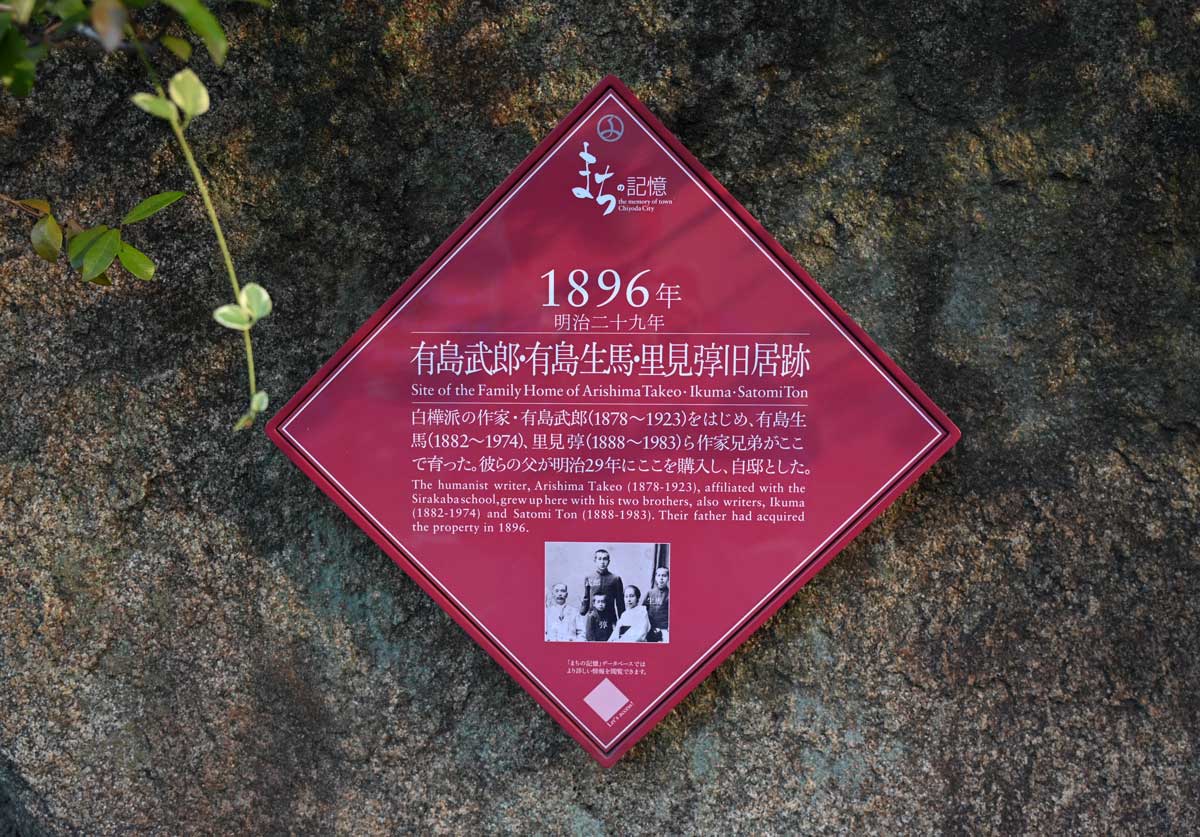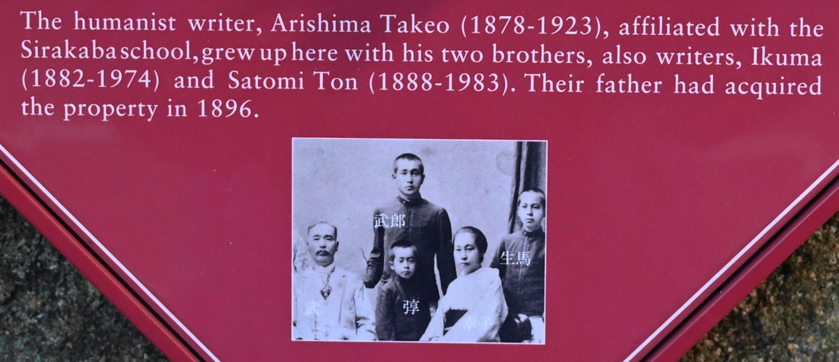 ・写真プレートの説明では、有島武が1896(明治29)年にここに邸宅を購入したこと、有島兄弟がここで育ったとある。