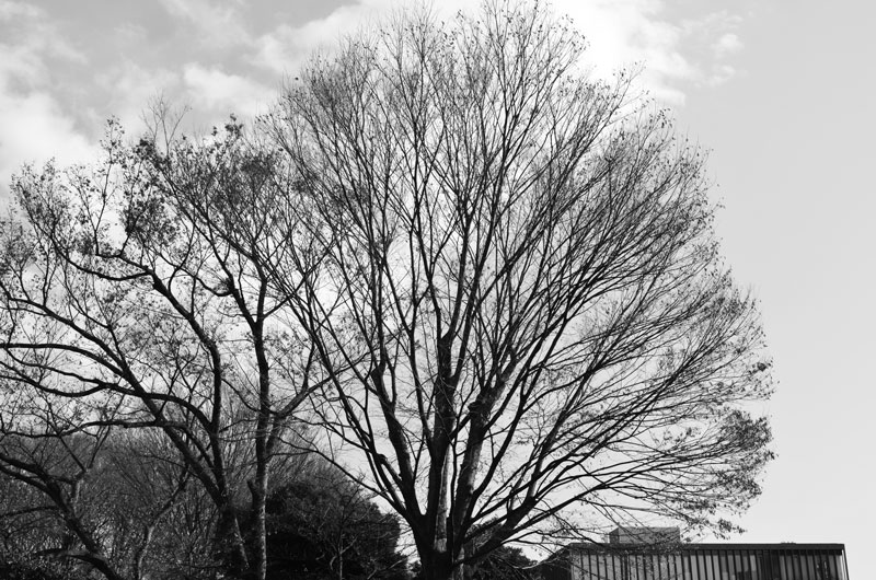 ・白黒にしたら、樹相がはっきりとわかる。