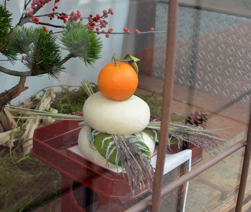 恵比寿の先の和菓子屋さん。ガラス越しに「おめでとう」
