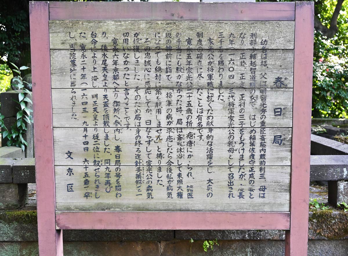 「死して後も天下の政道を見守り之を直していかれるよう黄泉から見通せる墓を作って欲しい」という春日局の遺言に沿って建てられたらしい。