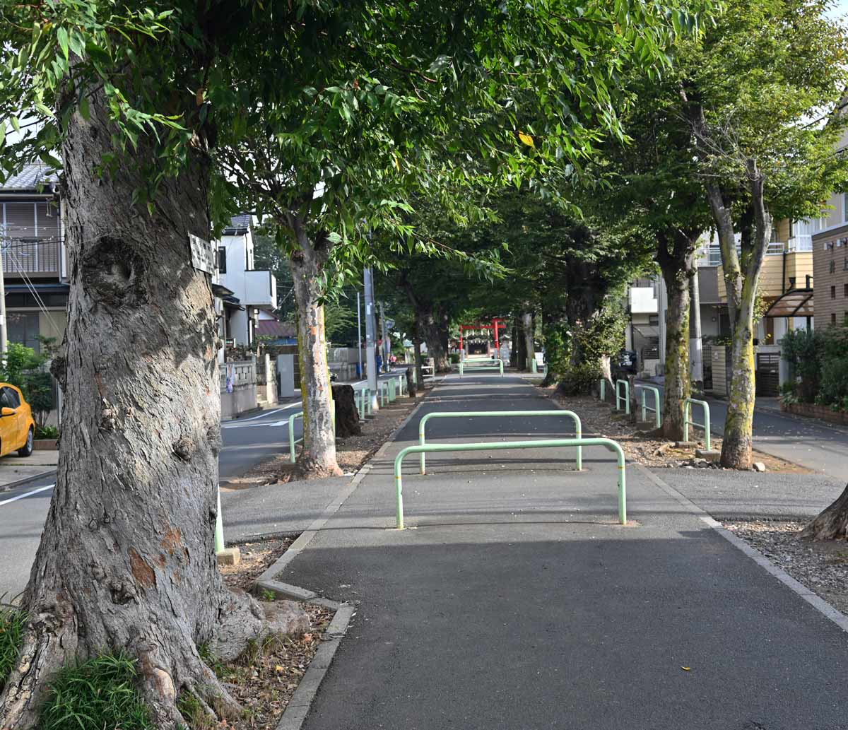 ・けっこう長い。住宅地の参道。