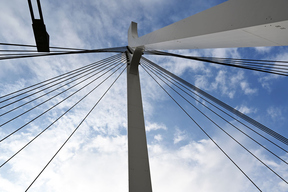 ・新しい橋と古い放送塔の対比。