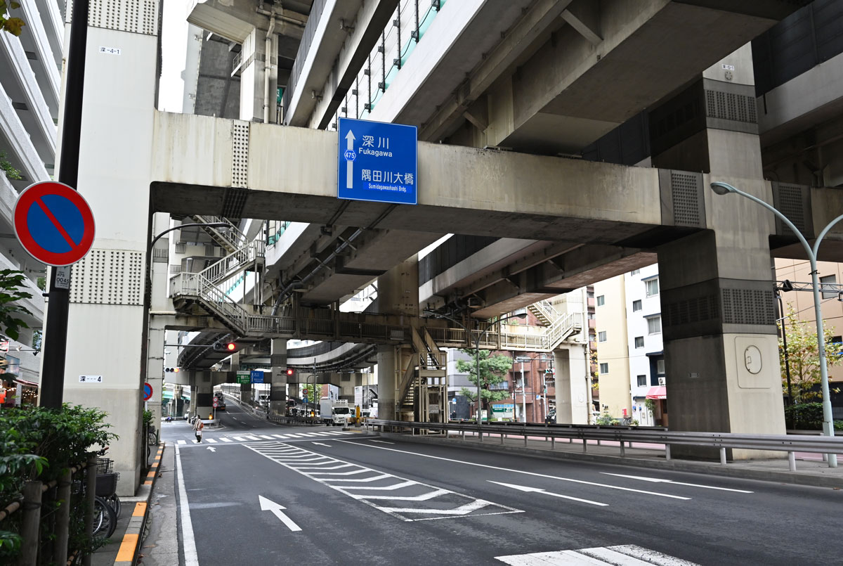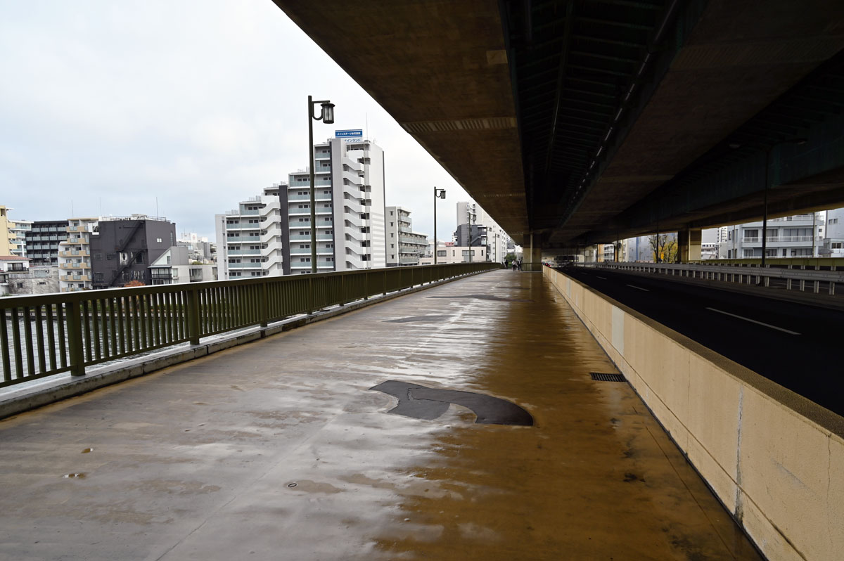 ・首都高を見上げる。