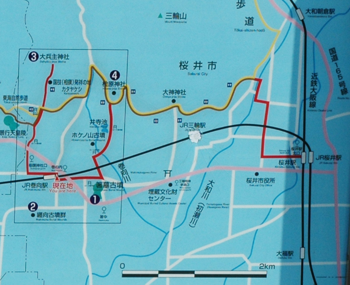 ・ここから箸墓古墳などを歩く。