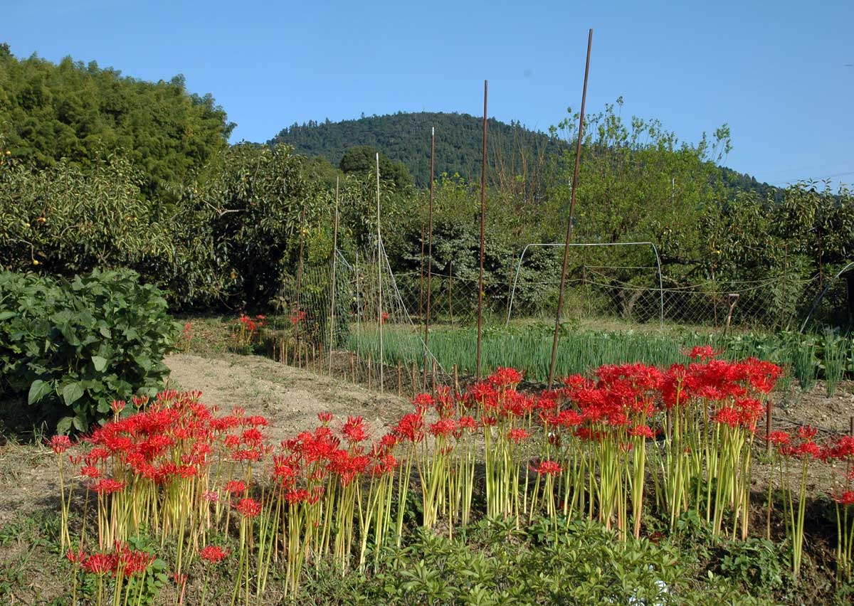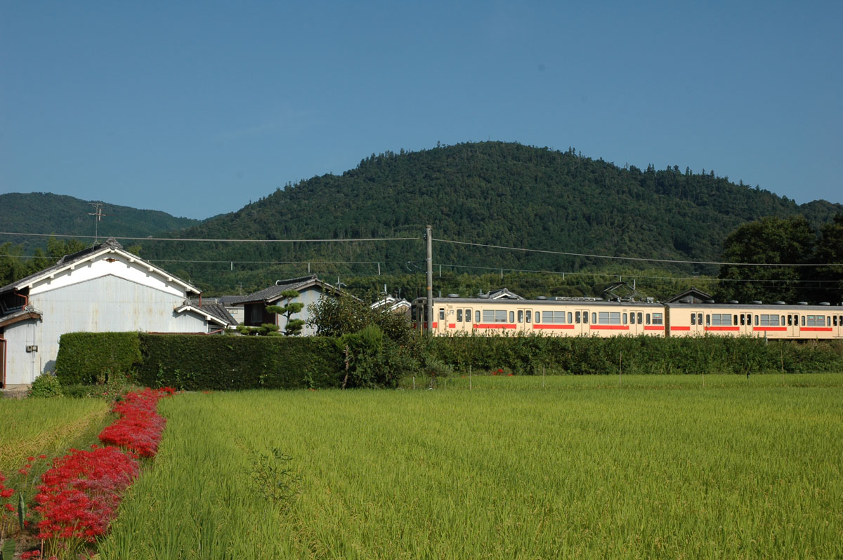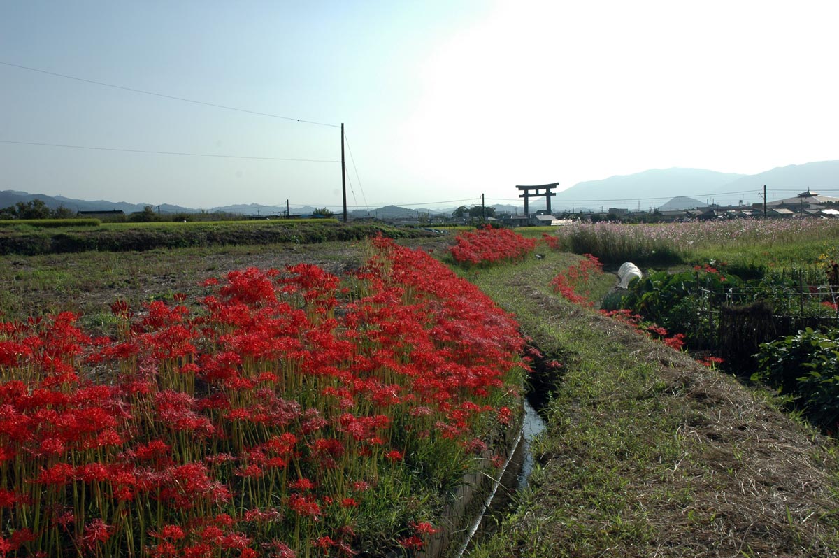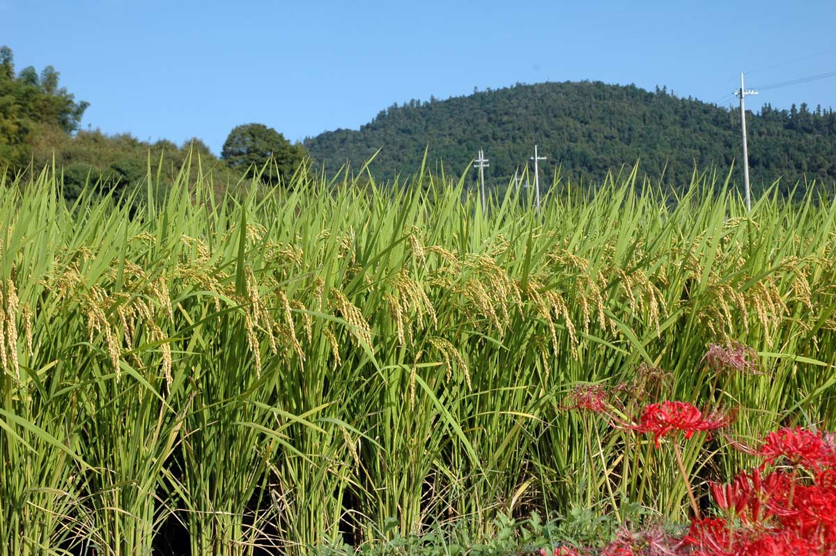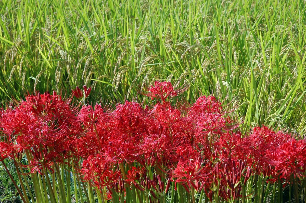 ・手前は水田。赤は彼岸花。