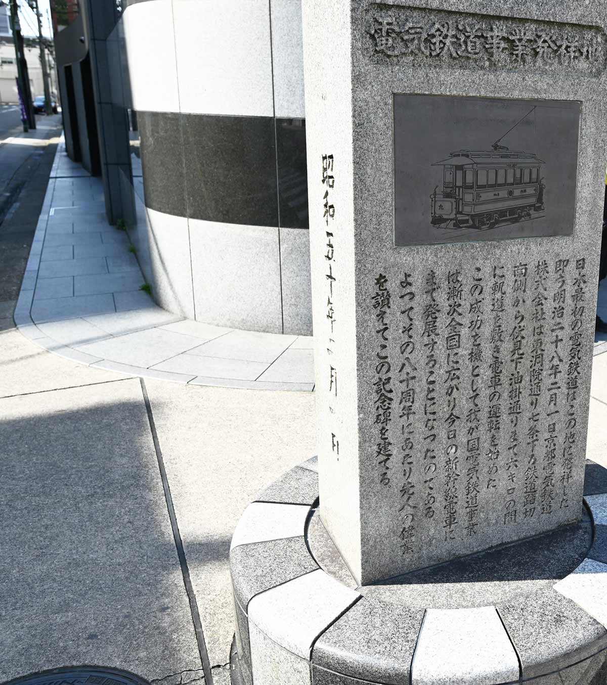 ▼電気軌道発祥の記念碑