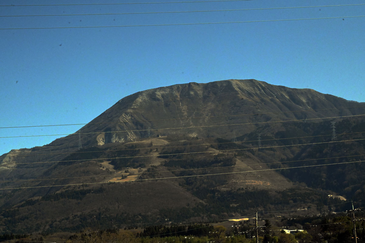 ・箱根山の斜面越しに見える。