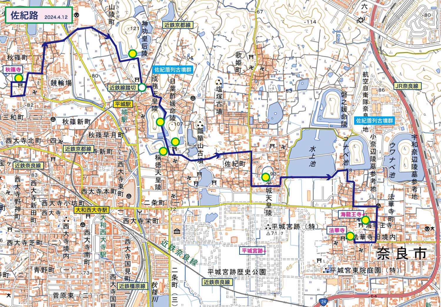 ・秋篠寺から盾列古墳群を通り