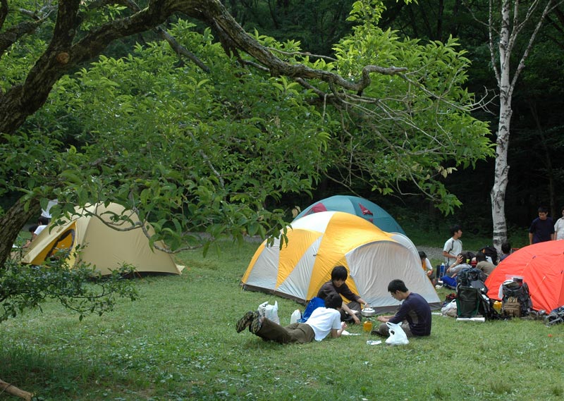 ・第1日は徳沢幕営地。芝生のキャンプサイト。