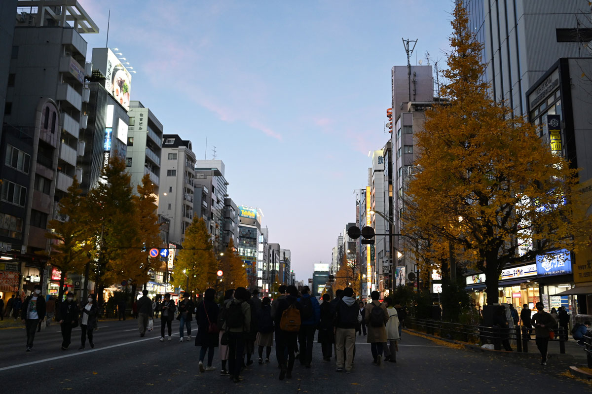 ・冬の日、6時ころの麹町大通り(新宿通り)