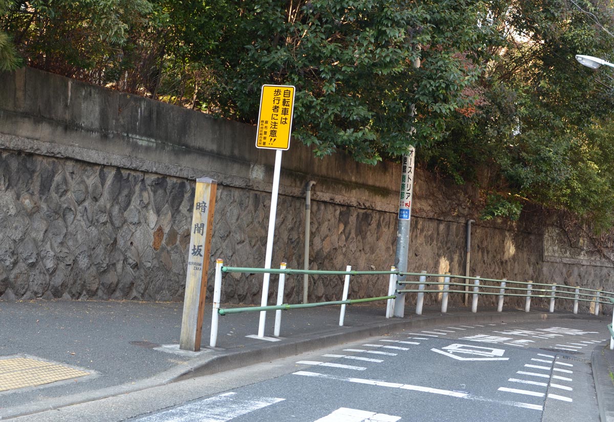 ・暗闇坂はかなりの急坂。しかもわくわくする名称だ。