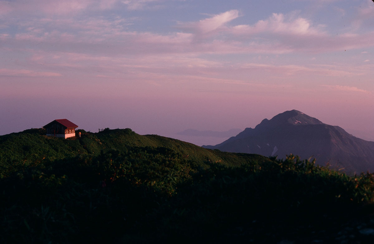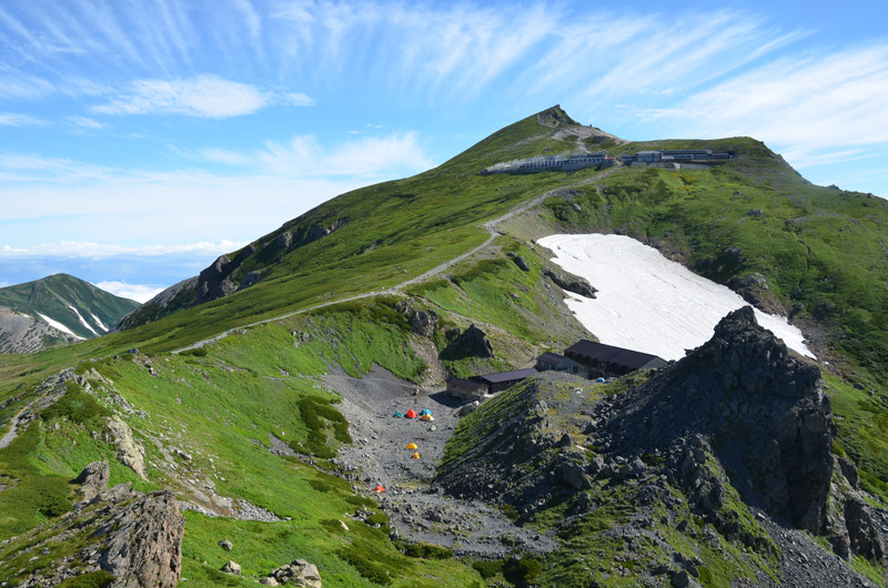 ・雪渓を登り、稜線に出る場所に白馬岳頂上宿舎(村営)がある。