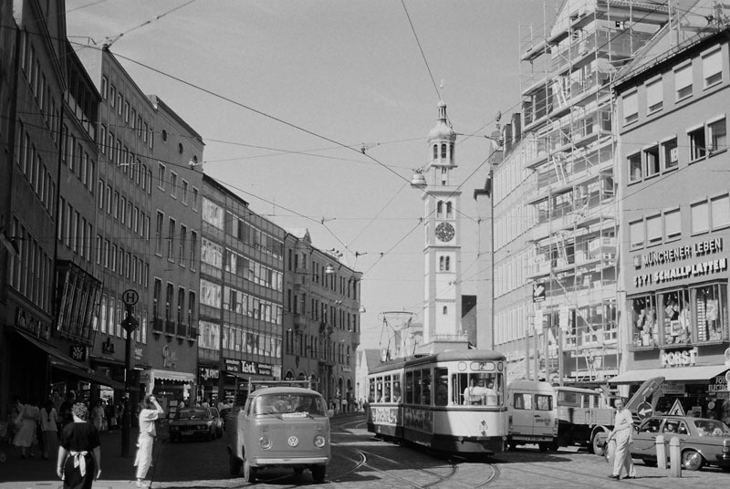 ・中央の市電はトラム。手前の自動車はフォルクスワーゲン。