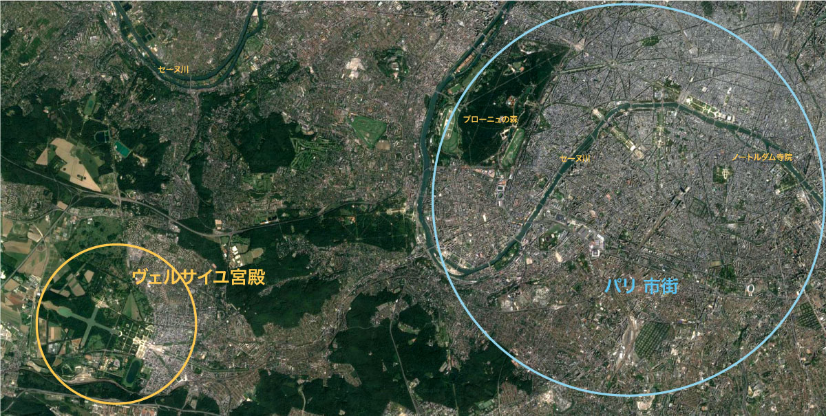 ▼ヴェルサイユとパリの位置