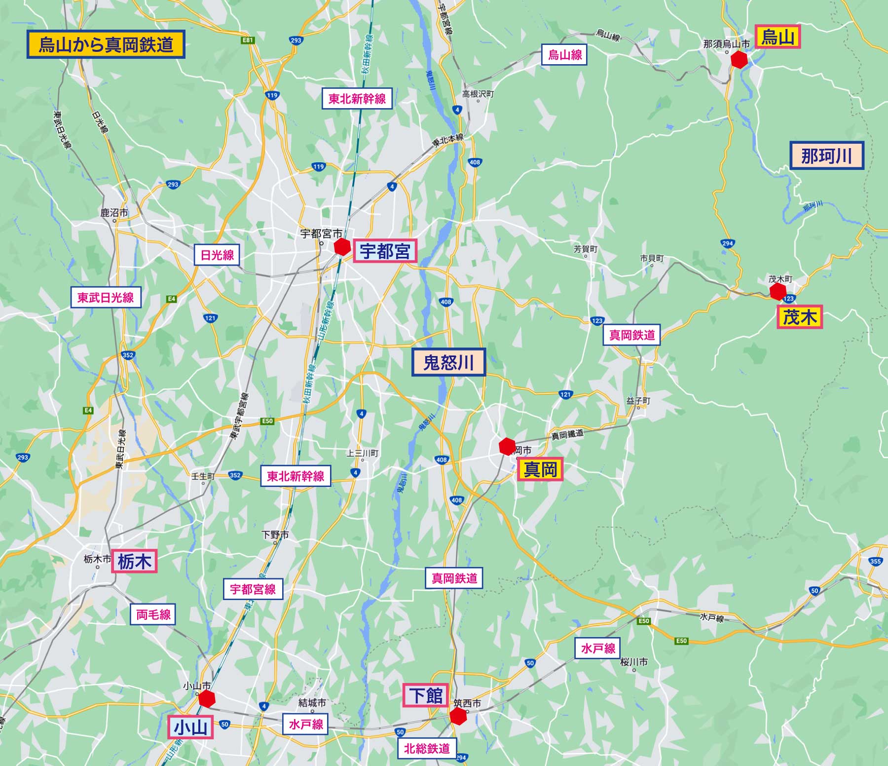 ・正確には東北本線宝積寺駅からの支線が烏山線だが、実際には宇都宮が始発。