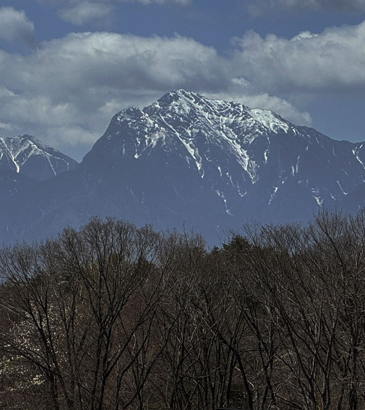 ・小淵沢とか甲斐駒ヶ岳の方(つまり北の方)から見ると、山容に角度がついてとてもよい。