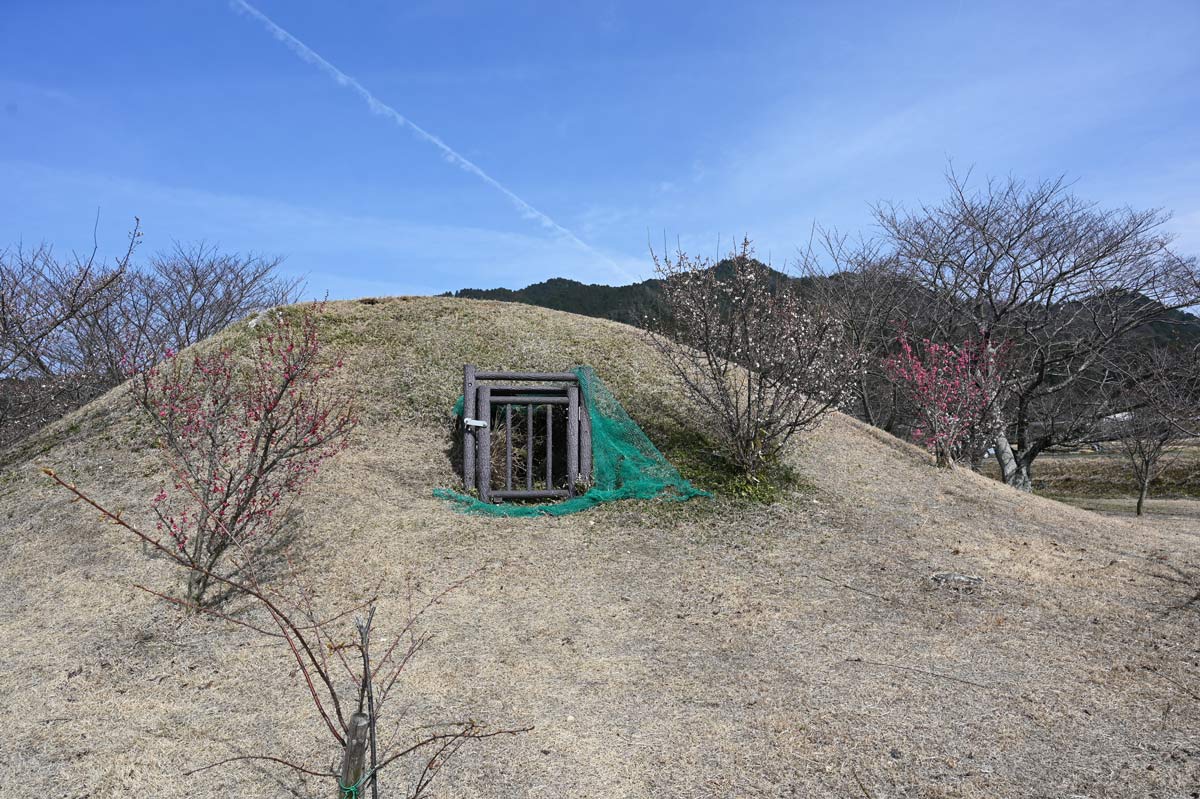 ・円墳。梅がほどよく咲いている。