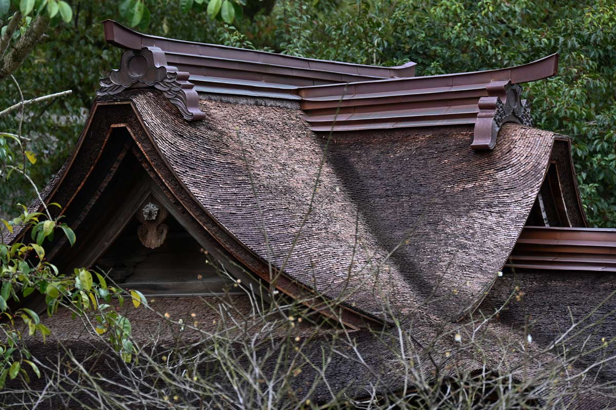 ▼志賀社の檜皮葺