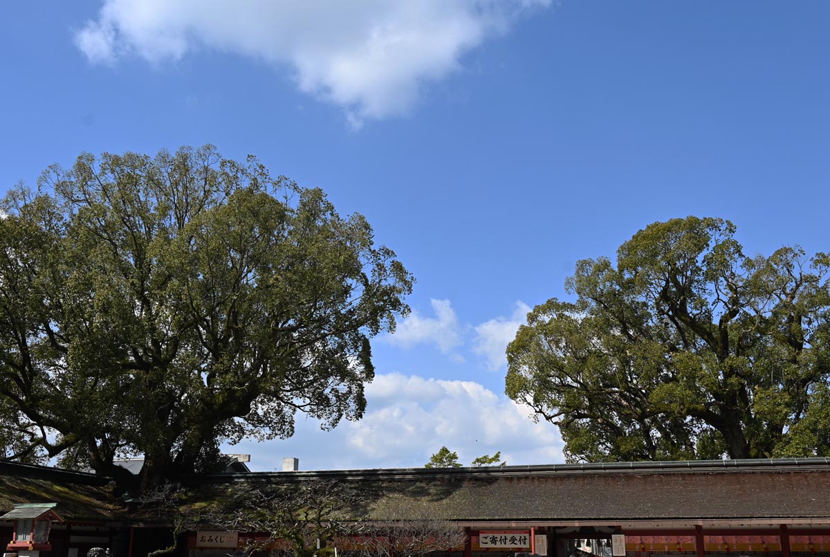 ・本殿前より大樟を望む。