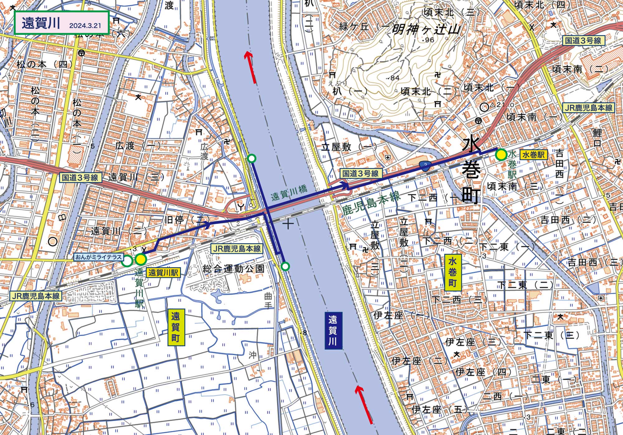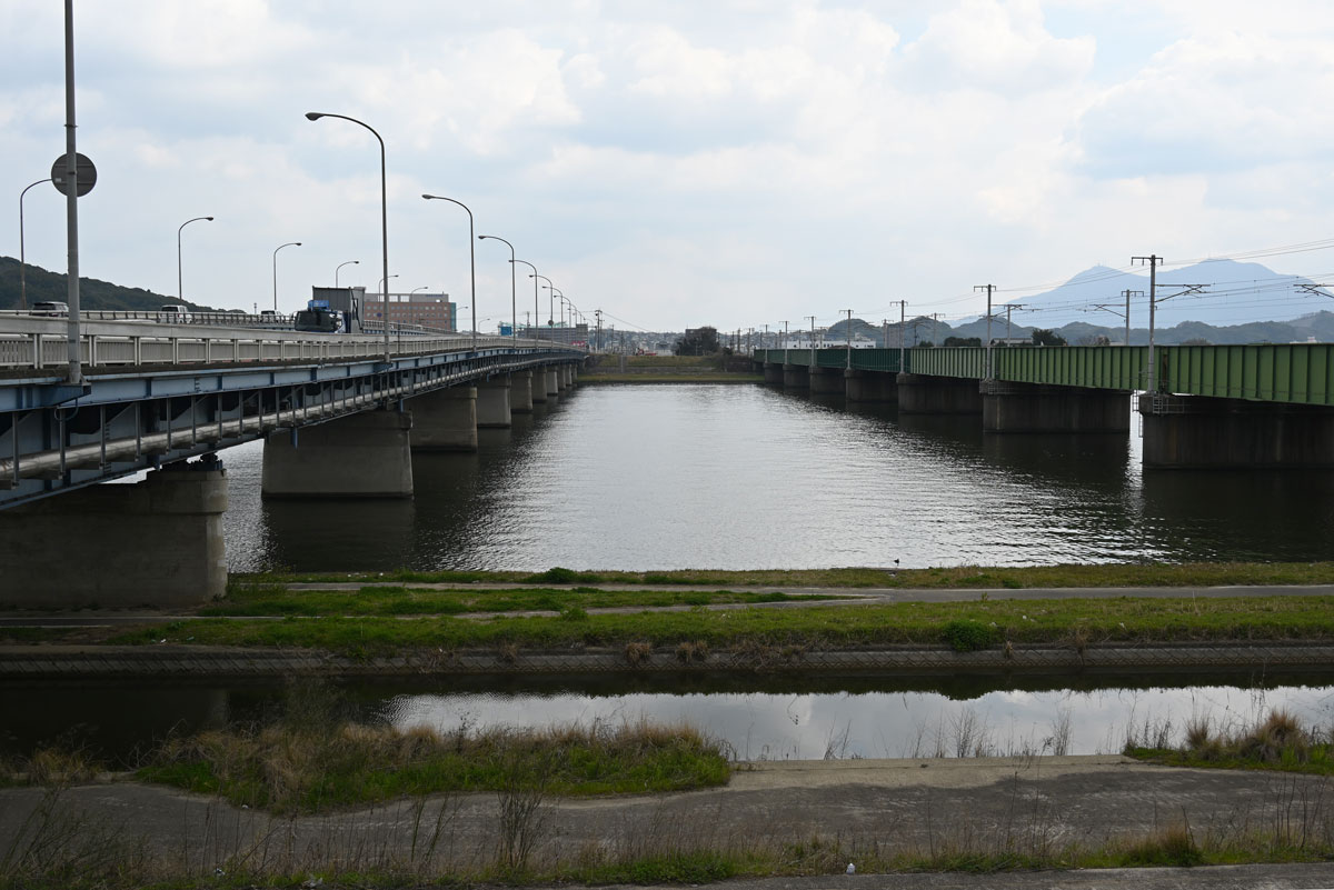 ・飯塚市を流れる遠賀川。鉄道は筑豊本線。