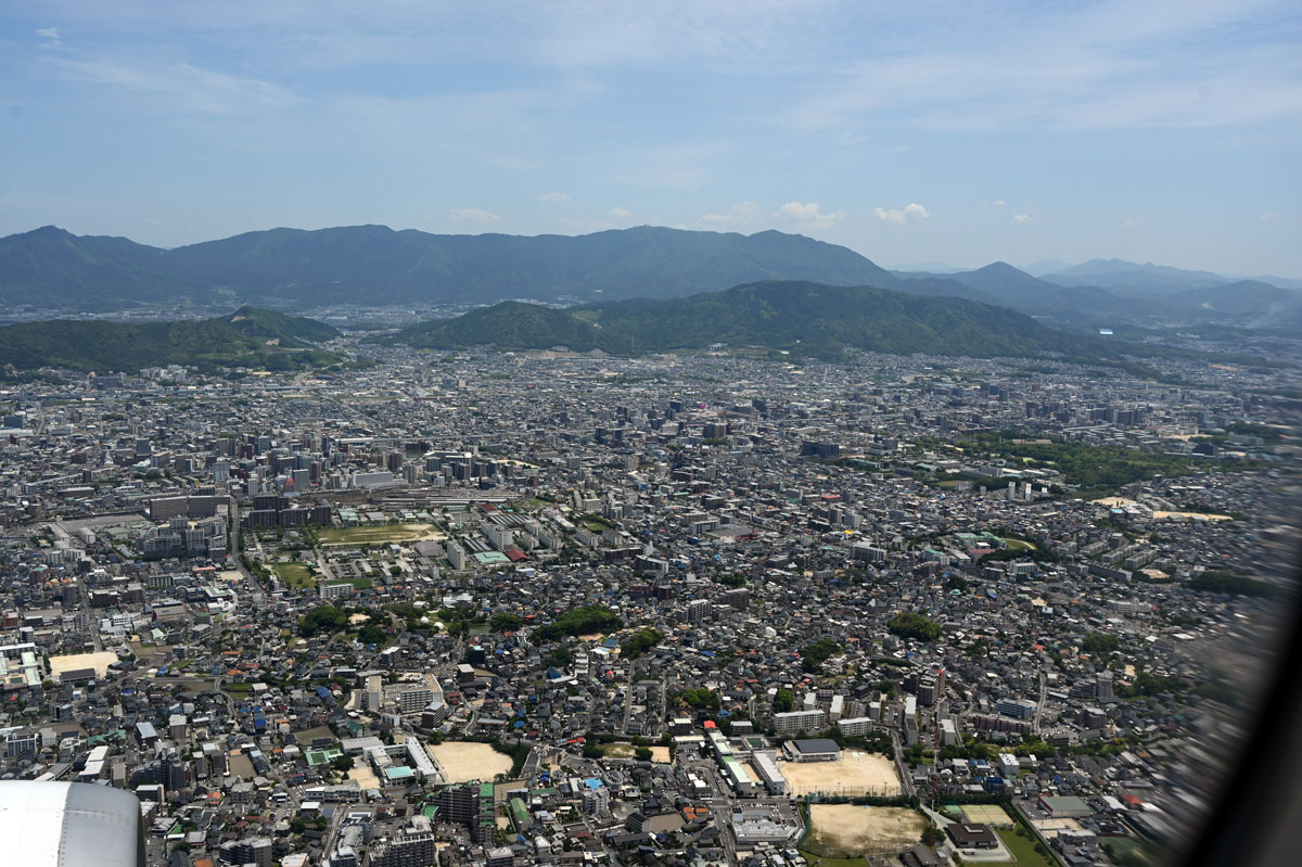 ・福岡市南部を旋回して福岡空港へ