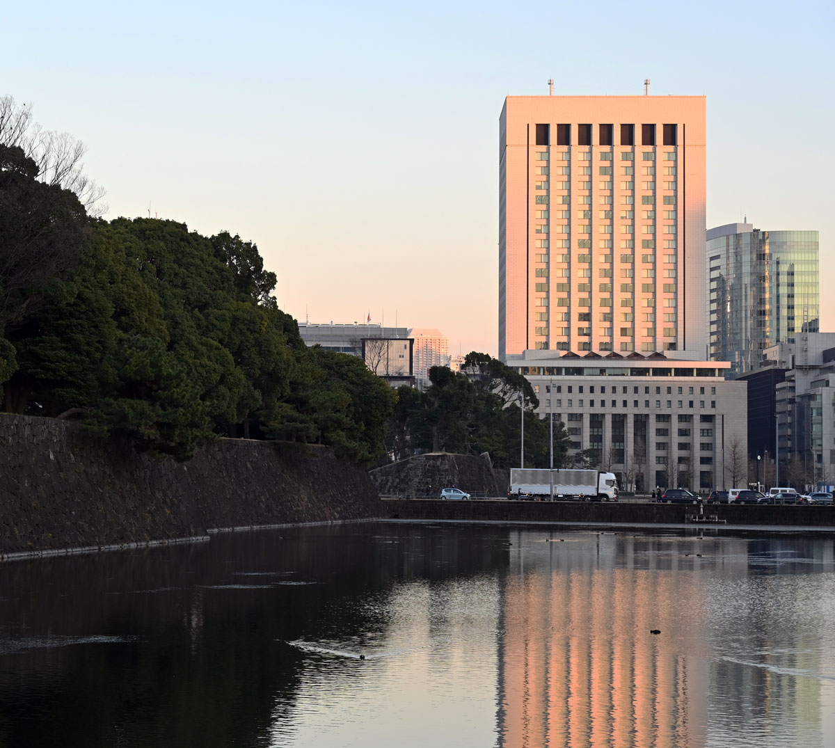 ・内堀に見る明治生命館。
