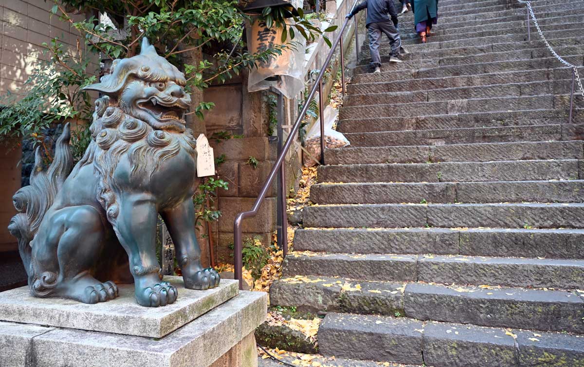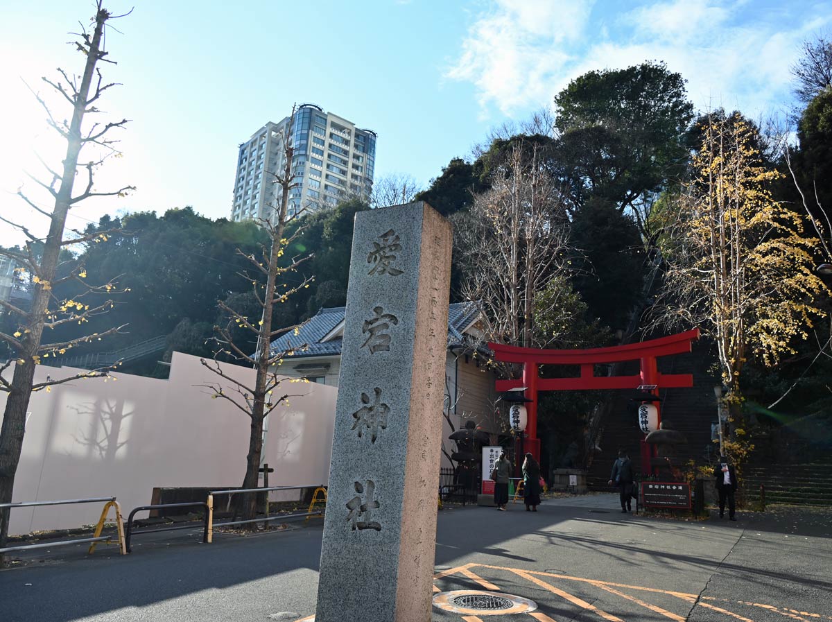 ・標高26mの小高い丘につくられ、そこに登る急傾斜の石段(出世の石段)が有名。虎ノ門ヒルズ駅の近く。