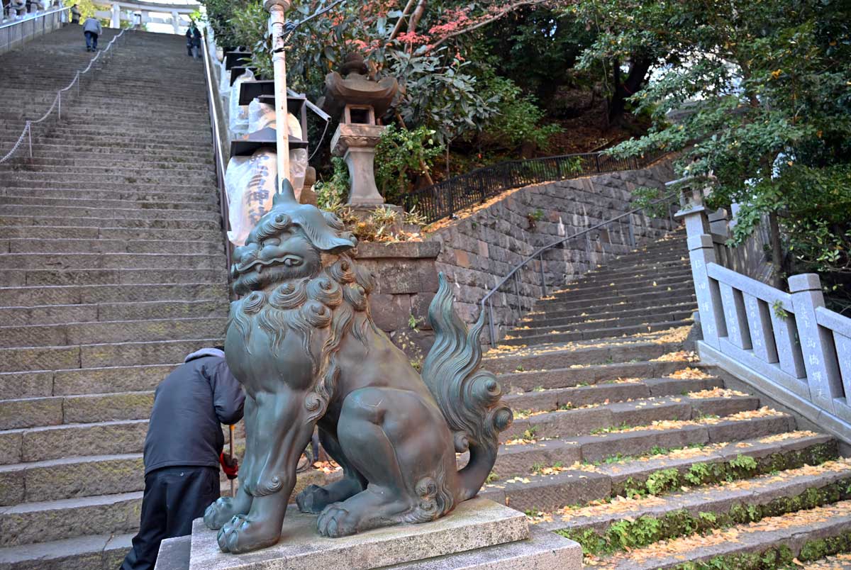 ・階段前の狛犬。