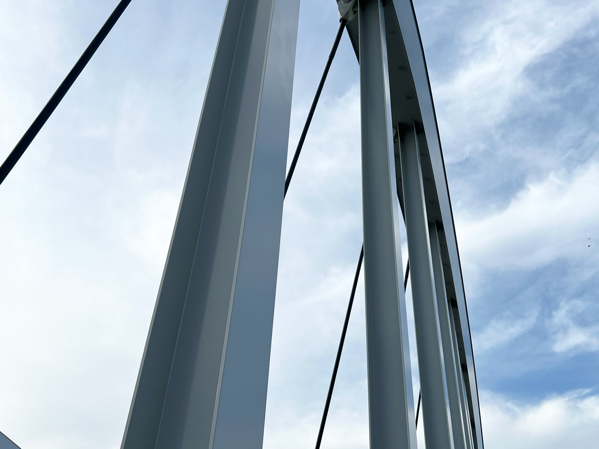 ・橋の中央に塔が下部から見える。