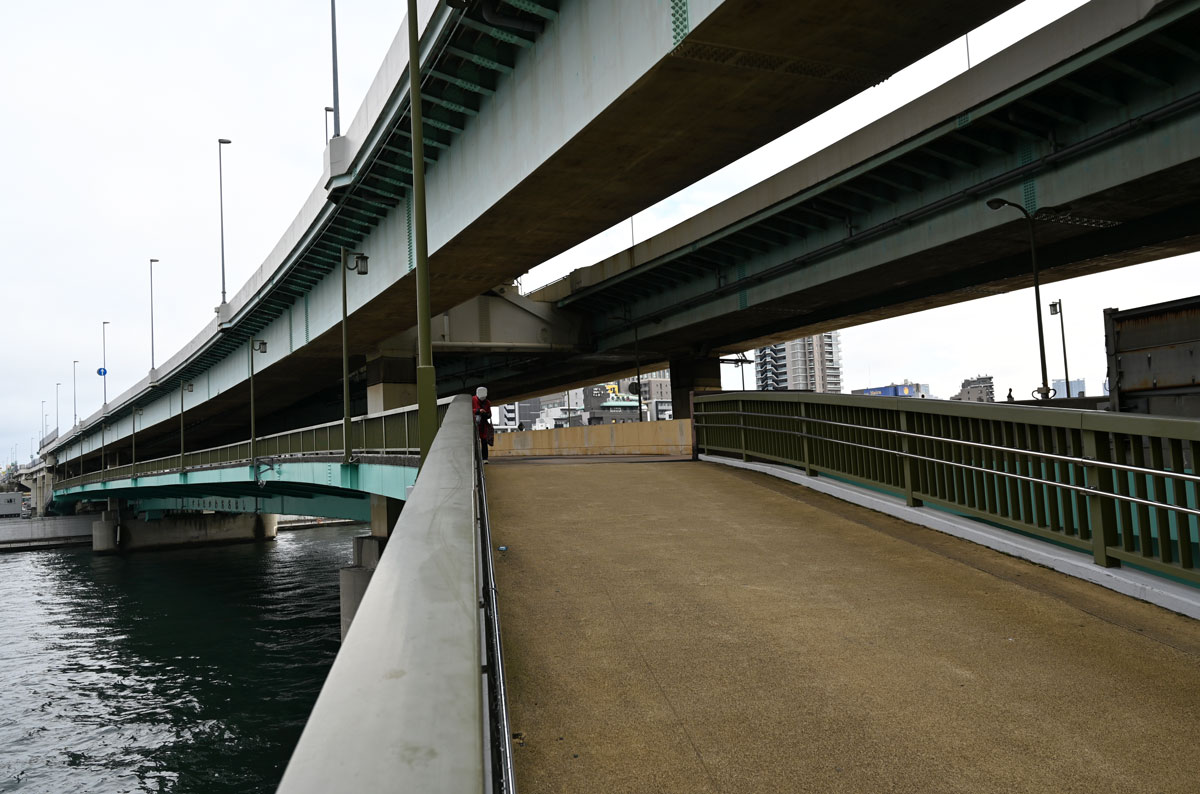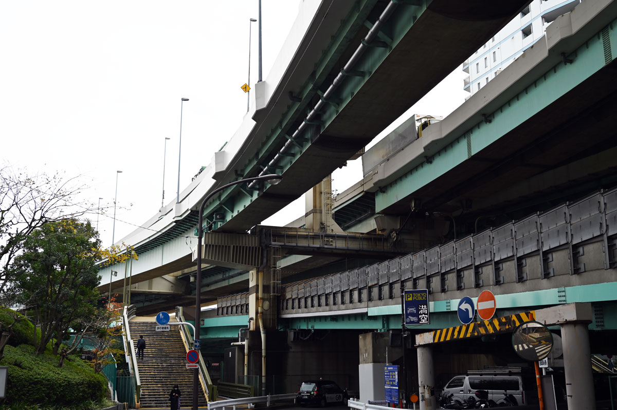 ・首都高を見上げる。