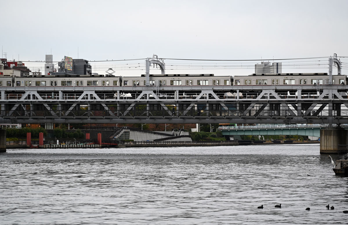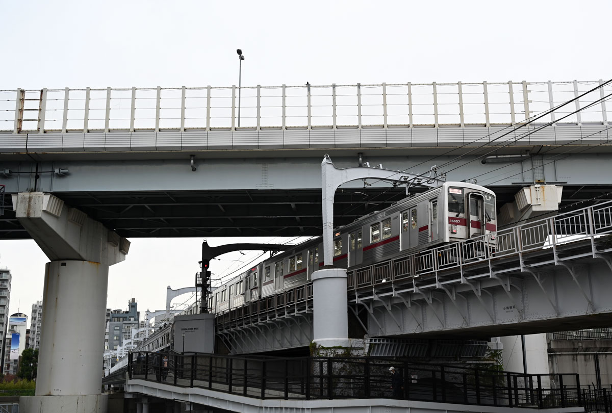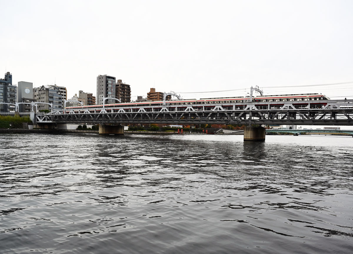 ・橋の上は東武線が走る。