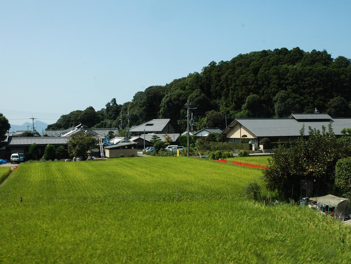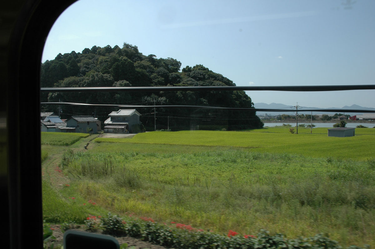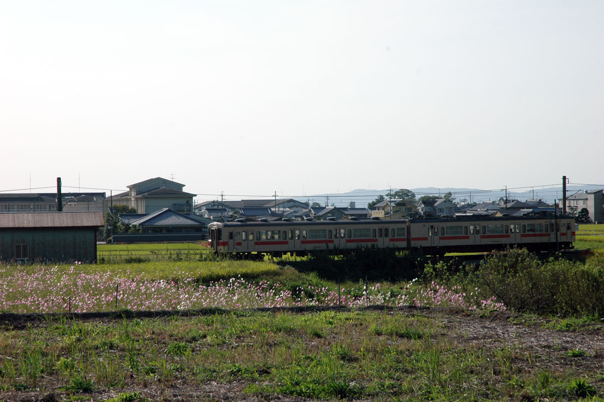 ・田んぼの向こうは旧桜井線。